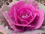正門のそばにある花壇が、冬の植物へと移り変わりました。 たくさんの雨露を湛...