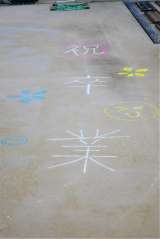 今までに作った作品を持ち帰る特に使う「作品袋」に、デコレーションを施しています...