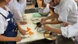5年生が家庭科で調理実習を行なっています。 「ほうれん草のおひたし」と「こふ...