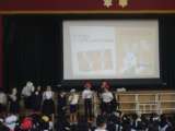 今日の集会は図書委員会の発表でした。今年も「本の帯コンクール」の開催のお知らせと、本の帯の作品例をいくつか紹介してくれました。 本の帯づくりは、要約や言葉の選択、帯のデザインなどいろいろな力を発揮...