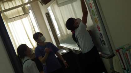 どんな活動をするのか、去年の活動の紹介をしてもらって、クラブの目標を考えたり、活動の内容を考えたりしています。