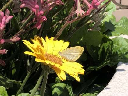 とてもいい天気の中、モンシロチョウたちが玄関前にたくさん集まって来ています。