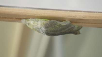 校長室のアゲハの幼虫がみんな蛹になりました。だんだんと色が変わってきて、まもなくアゲハ蝶が羽化すると思います。みんな大事に見守ってくださいね。