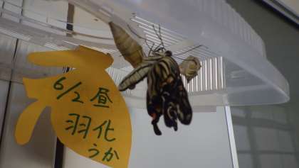 田島南の仲間となったアゲハチョウが無事全員羽化しました。学校や公園で見かけることがあるかもしれませんね。