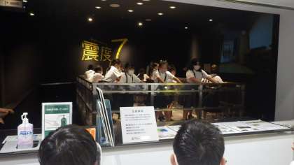 実際にあった阪神淡路大震災の揺れを体験した後、今後起こると想定されている南海トラフ地震の揺れを体験しました。