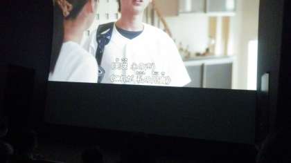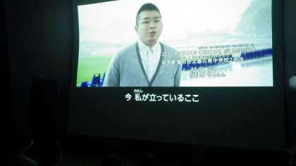 モニターからシアタールームに移動して、東日本大震災を体験した人の話をもとに、地震の被害から自分たちの身を守るためにどのようなことを心がければよいか、訓練を真剣にすることで、本当に災害が起こった時冷静に状況に対処することができるようになることなどを学びました。