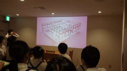 シアターから移動して、次は日常生活をしている場所で、地震が起こった時の行動について学びます。火を消すことや揺れを感じた時に、真っ先にすること、学校の教室を壁に打ちしだして、気を付けるポイントがあることなどを教えてもらいました。