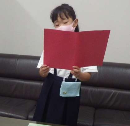 1学期のことを振り返って、がんばりや楽しかったことを発表しました。2年生と4年生の代表の人の発表を教室に配信してみんなで聞きました。