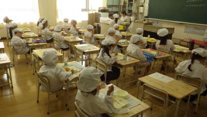 みんな給食の時間に、しっかりと聞いています。読み聞かせの場面を想像して、食べる手も止まるかなっていうくらい聞き入っている子もいるようです。