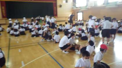 9月15日(木)は児童集会で「じゃんけん列車」と「もうじゅうがりにいこうよ」をしました。メイングラウンドが工事のため、サブグラウンドと体育館に分かれて、それぞれの遊びをしました。
