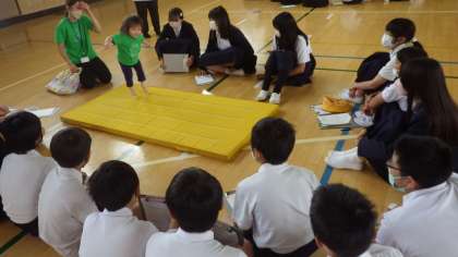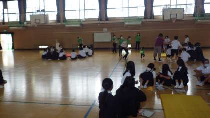 NPO法人ママの働き方応援隊の皆さんに来ていただいて、赤ちゃん先生クラスを開校していただきました。本校とのご縁もあって、今回は4人の赤ちゃんとお母さんに来てもらって、体育館で赤ちゃんの生活の様子や、育ちについて教えてもらいました。