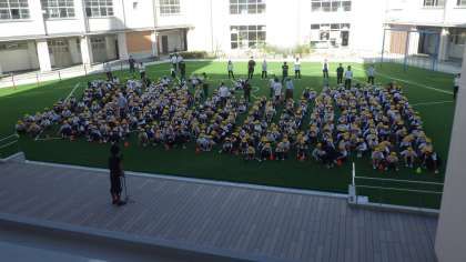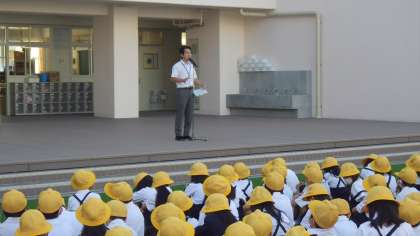 過ごしやすい季節になって、こうして外での朝会も清々しい気持ちでできるようになりましたね。いろいろなことに興味をもって、学ぶことができる秋にしていきましょう