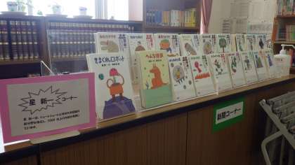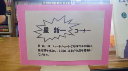 図書室のカウンターの特設コーナーに星新一ショートショートの作品集を並べています。月曜日の「お話で世界旅行」で紹介された「気まぐれロボット」のほかにもたくさんの作品がありますよ。新しいジャンルの読み聞かせに、高学年の人もわくわくしながら集中してお話を聞いていたそうです。そこで興味を持った人が 早速手に取って読み始めている姿も見かけました。いろんなジャンルの本に触れることは、新しい出会いがあって、素敵な体験になりますね。