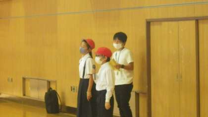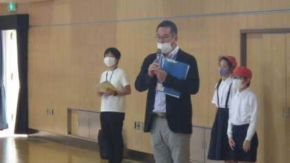 初めに教頭先生からのお話です。林間学習中に時間と言葉遣いを意識して、気持ちよく楽しく活動できるようにしていきましょうというお話でした。