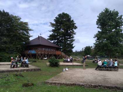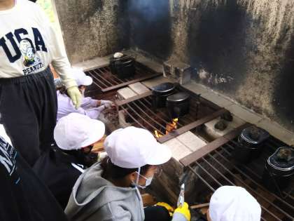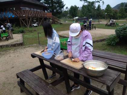 カレーづくり続き。食べ始めるころには、青空も見えてきました