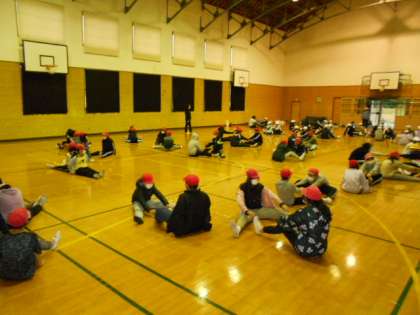 5年生 林間学習24 公開日 2022/10/07 更新日 2022/10/07 お知らせ 3日目の朝。小雨。近くの体育館で朝の集いを行いました。昨晩のキャンプファイヤーを全力で行ったので、少し疲れた表情をする人たちもいましたが、ストレッチなど体をほぐす運動や、ペアでボールを運ぶ運動を楽しみました。元気に3日目のスタートを切りました。 いいね(0)