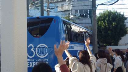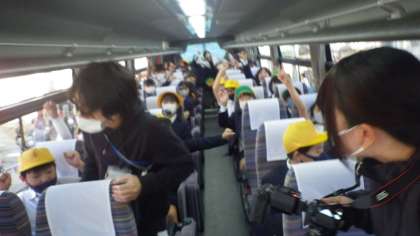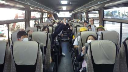 いよいよバスに乗り込み、出発です。みんなとても楽しみにしている様子です。お見送りの保護者の皆さんが、手を振って、送り出してくださいました。
