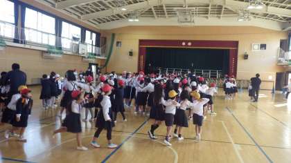 最後は、先頭になっている人にみんなで温かい拍手を送って終わりました。みんなにこにこ楽しい時間でした。集会委員会の皆さん、準備片付けご苦労様でした。