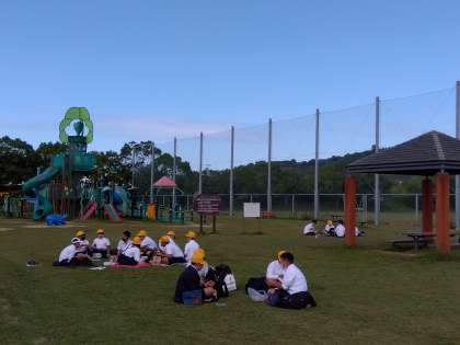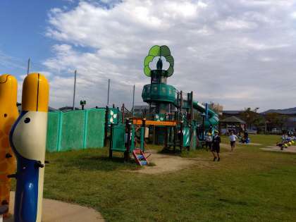 広川町のわんぱく広場で昼食をとりました。遊具も貸し切り状態で満足なひとときとなりました。いい日和です。
