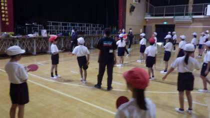 今日は日本ペイントマレッツの皆さんに来ていただいて、卓球を教えていただきました。PTAの方もサポートスタッフとして来ていただいて、4年生を対象にして開催しました。まず3時間目に4年2組からスタートです。