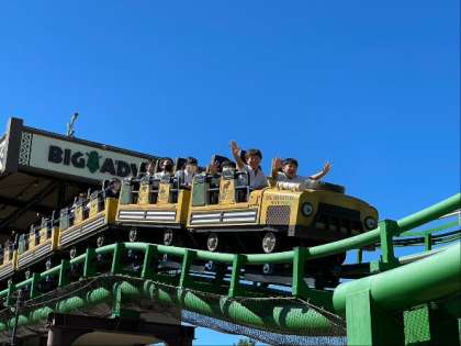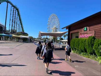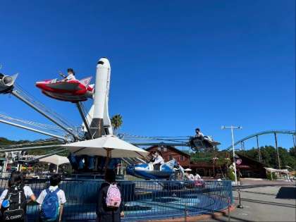 様々なアトラクションが青空に映えます。