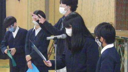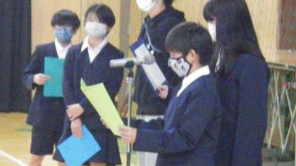 校長先生から、「今回の修学旅行ではとても気持ちよく過ごすことができました。それは皆さんが、先生方の指示をしっかりと聞いて、互いに気持ちよく過ごすことをしっかりとできていたからです。」と講評をいただきました。