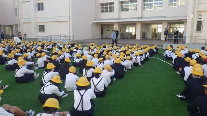 今日の児童朝会は、天気がいいのでサブグラウンドで行いました。サブグラウンドに全校児童が集合することにも、だいぶ慣れたようで、8時30分の開始までにはみんな並んで待機することができています。