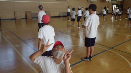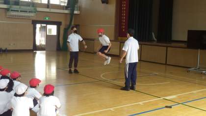 最後にファットマンクルーの方が回す人(ターナー)、5・6年生の代表の人がジャンパーで模範演技に挑戦しました。