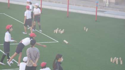 新しいスポーツにトライ!(モルック競技に挑戦:4年1組)【11月10日(木)2