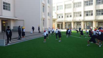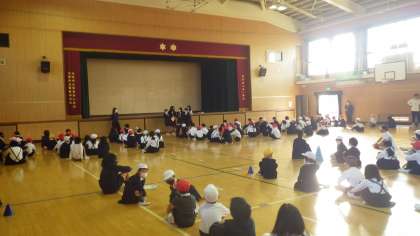 今日の児童集会は、だるまさんの一日をサブグラウンドで、イントロクイズを体育館で行いました。先週とはグループを入れ替えての実施です。メイングラウンドが使えるようになったら、ダイナミックな動きの遊びもしていきましょうね。