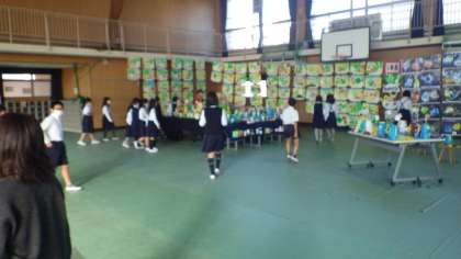 日曜参観・作品展の準備が整って、今日は児童の相互鑑賞を行いました。ほかの学年の作品を丁寧に鑑賞する時間です。どの学年の作品も素晴らしい仕上がりで、鑑賞に来たみんなは、感嘆の声をあげながら作品一つ一つを丁寧に見て回っていました。