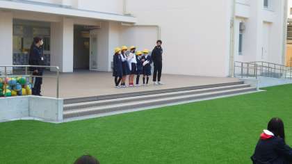 今日の児童集会は、サブグラウンドでボール送りゲーム、体育館でジェスチャーゲームをしました。来週はグループを入れ替えて同じ遊びをする予定です。