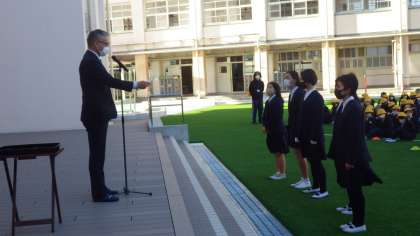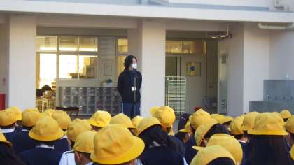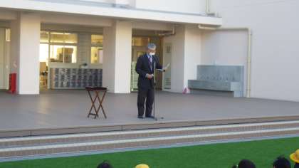 今日は児童朝会の前に、税務署から署長さんが来られて、税の習字に応募した中から、優秀な作品の表彰をしていただきました。