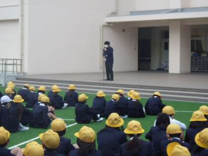 監護当番の先生からは2月の生活目標「外で元気に遊ぼう」についてのお話がありました。冬の寒い時期ですが、体を動かして、運動するようにしましょうというお話でした。