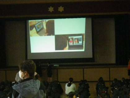 今日の朝の時間はクラブ発表会を行いました。全校児童が体育館に集合して各クラブの発表を聞きます。