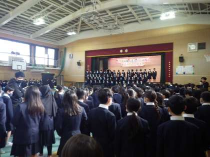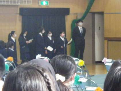 卒業生、在校生の代表の人が言葉を交わし、最後は、在校生の作った花道を通って退場しました。