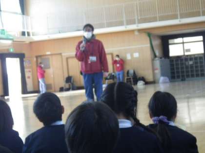 最後に体育館に戻って、学習の振り返りと、身の回りのバリアフリーについてみんなで意見を出したり考えたりして今日の体験は終了しました。
