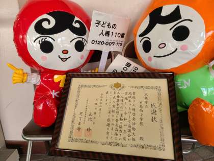 3月7日火曜日、人権啓発活動大阪地域ネットワーク協議会実施の「人権の花」運動への参加について感謝状をいただきました。玄関に飾らせていただいております。ありがとうございました。