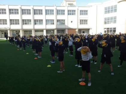 今日の児童朝会の校長先生のお話は、就寝の大切さと体調管理、次の学年にあがるための準備についてお話しいただきました。次に監護当番の先生から生活目標のお話がありました。最後に健康委員会からの姿勢体操があって朝会は終わりました。