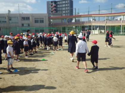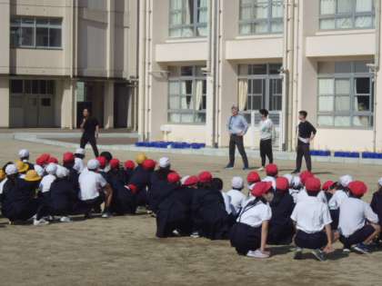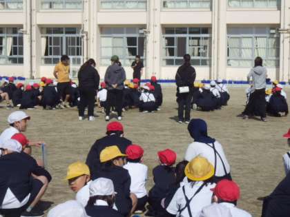 みんなが揃ったら自己紹介をします。たてわり班担当の先生方がお手本をして、自己紹介タイムを盛り上げています。6年生のリーダーが率先して自己紹介を進めていきます。