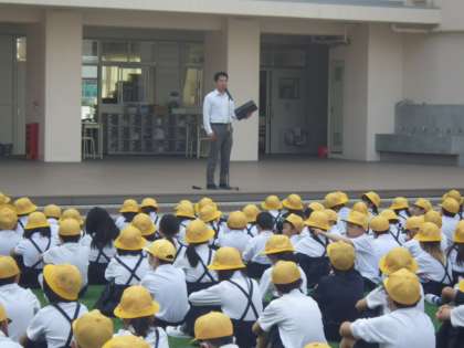 監護当番の先生からは、今月の生活目標について「元気に」あいさつできているか今週はあいさつの仕方を見直して元気なあいさつを心がけるようお話がありました。