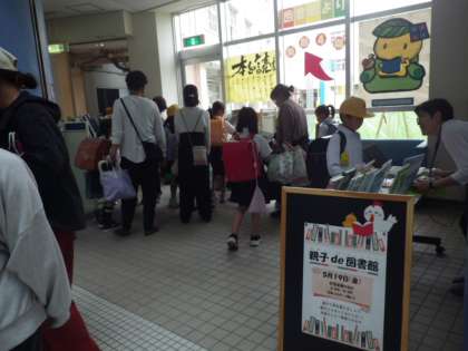 この日は、玄関ピロティで、学校図書館の出張貸し出し『親子de図書館』も開設され、下校時に親子で立ち寄って一緒に本を選ぶ姿も見られました。