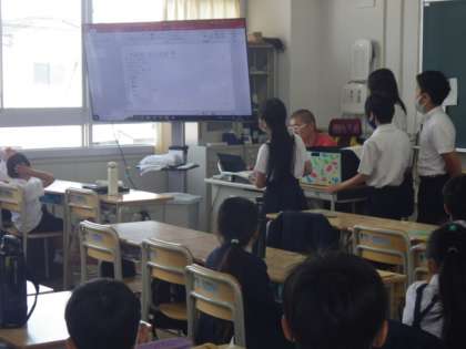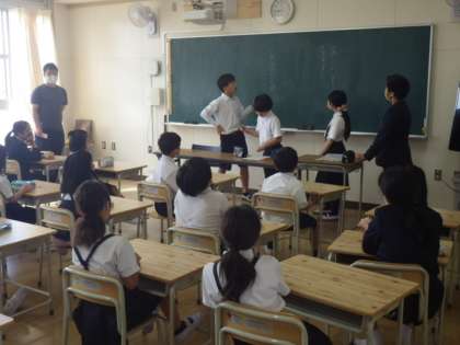 今日の朝の時間に、6月15日のたしなん祭りに向けて、それぞれの班の出し物の希望を話し合いました。
