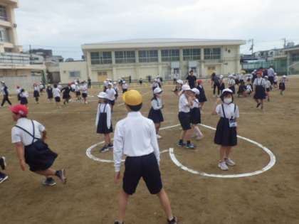 今日の児童集会は「しまおに」をしました。メイングラウンドに書かれた島をたどって、オニに捕まらずにゴールを目指すオニごっこです。タッチされたらスタートに戻って再度ゴールを目指します。久々の遊びで最初は緊張していましたが、すぐに盛り上がってみんなで元気にグラウンドを駆け回りました。
