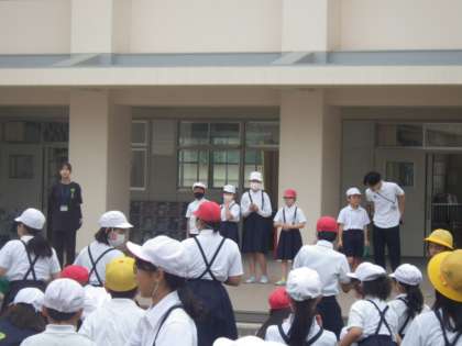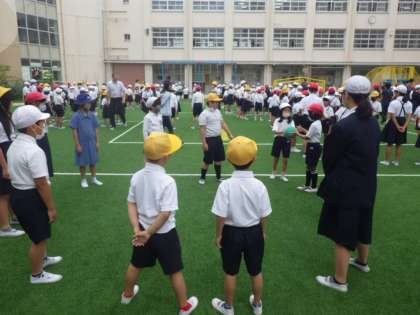 意外なBGMの選曲に、先生方も感心したり驚いたり。サブグラウンドでの遊びも久しぶりでしょうか。なんだか和やかなみんなお雰囲気で、今日の集会も楽しく遊ぶことができたと思います。