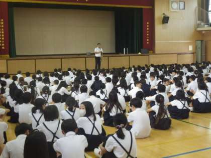 最後に生活指導の先生から、学校は三足制なので、履き替えをいつも意識するようにしましょうと、お話がありました。