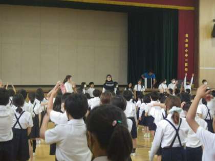 月曜日は、児童朝会です。今日は副校長先生のお話です。体験入学の人の紹介が始めにあり、次に、たしなん祭りの取り組みについて、最高学年がリーダーシップを学び、発揮する場面であると同時に、みんなが協力することでより楽しいお祭になること、6年生の頑張りを支えるフォロワーシップを学ぶ場でもあることについてお話しいただきました。