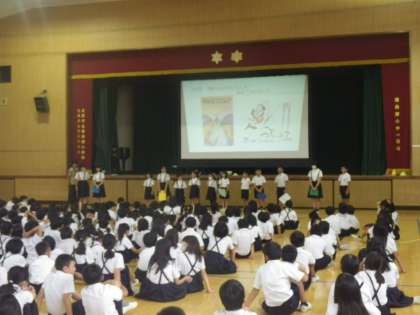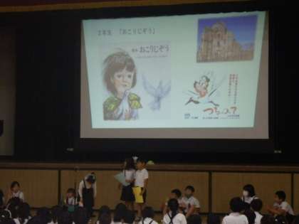 次に各学年で取り組んだ平和学習の取り組みについて、代表の人に発表してもらいました。みんなしっかりとした発表ができました。平和の大切さ、戦争は決して引き起こしてはいけないものであることを確認することができました。