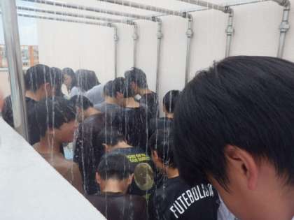 シャワーを浴びるときにも、普段とは違う衣服の張り付く感じに「なんか気持ち悪い」「うひゃあ」と声を上げる様子もありました。