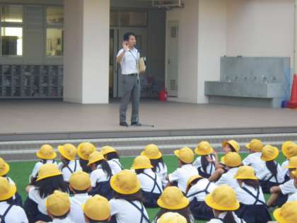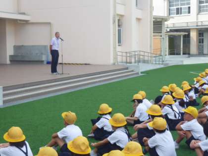 生活指導の先生からは、夏休み、大きなけがや事件の連絡がなく、皆さんが有意義な夏休みを過ごすことができたようで、うれしく思うこと。今月も「持ち物を大切にしよう」が生活目標なので、新しい持ち物に名前を書くことや、これまでの持ち物の整理整頓をしておくこと、生活習慣を整えることなどのお話がありました。
